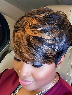黒人女性向けショートウィッグ、ブラウンピクシーカットウィッグ、女性向けショートストレートピクシーヘアウィッグ、1b/30カラーレイヤード合成オーバンブラウンピクシーヘアカットウィッグ(黒人女性向け)