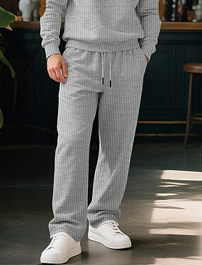 男性用 ズボン コーデュロイパンツ バギーパンツ ストレートレッグスウェットパンツ ドローストリング 弾性ウエスト 純色 履き心地よい 全長 アウトドア 日常 ストリートウェア ファッション クラシック ブラック ネイビーブルー 伸縮性なし