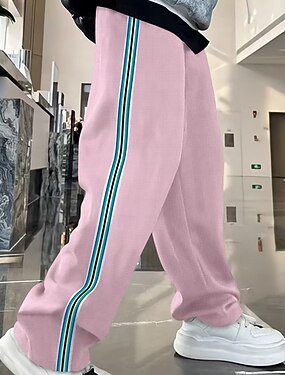 男性用 スウェットパンツ ズボン ストレートレッグスウェットパンツ ドローストリング ポケット 弾性ウエスト ストライプ 履き心地よい スポーツ・アウトドア 日常 ファッション カジュアル ダークブラウン ブラック マイクロエラスティック
