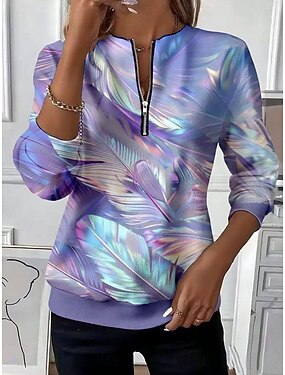 女性用 プルオーバースウェットシャツ ジップアップスウェットシャツ ジッパー プリント グラフィック 抽象的 ファッション カジュアル 長袖 クルーネック レギュラートップス ストリート 日常着 ピンク パープル 春 秋 冬
