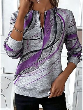 女性用 ジップアップスウェットシャツ ジッパー プリント グラフィック 幾何学模様 ファッション カジュアル 長袖 ラウンドネック レギュラートップス ストリート 日常着 ブルー ピンク ルビーレッド パープル グリーン 夏 春 秋