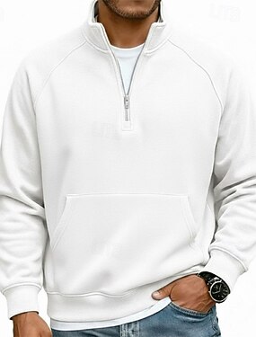 男性用 プルオーバースウェットシャツ ジップポロ バケーション ストリート ファスナー 長袖 ファッション ベーシック 幾何学模様 平織り ファッション 春 & 秋 オールシーズン レギュラー ブラック ホワイト カーキ色 ダックグレー プルオーバースウェットシャツ