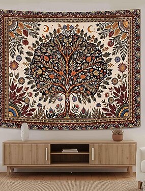 美しいヴィンテージの生命の木の壁掛けタペストリー、自然、植物、花の背景、ボヘミアンな部屋の装飾、寮のアパートの装飾用の大きな壁アート