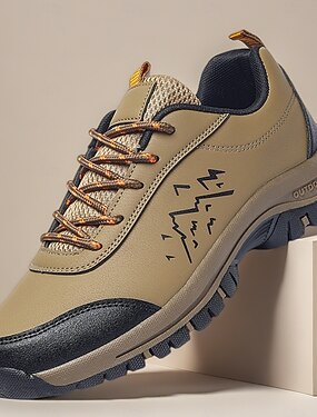 メンズ カーキ 通気性メッシュ&スエード アスレチックスニーカー – アウトドアやストリートウェアに最適な頑丈なカジュアルシューズ