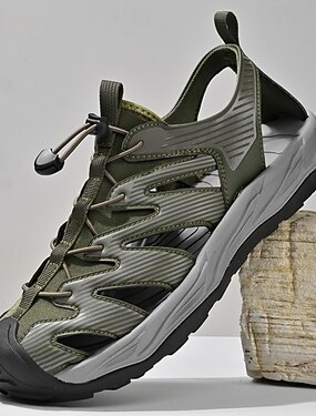 メンズベージュベルクロサンダル – カジュアルなサマーシューズ、アウトドアバケーション、調節可能なストラップ、快適なフィット感