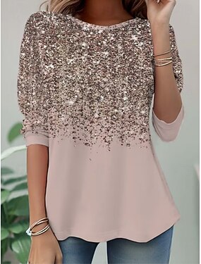新年 女性用 プラスサイズ Tシャツ プリント グラフィック レオパード ファッション スタイリッシュ ベーシック 長袖 クルーネック Vネック レギュラートップス 日常 お出かけ 週末 ピンク カーキ色 春 秋