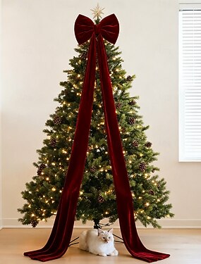 クリスマス 特大ベルベットリボン クリスマスツリー トッパー バーガンディ ホリデーデコレーション クリスマスツリー用吊り下げオーナメント、ホームパーティーの装飾用お祝いリボン