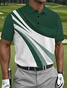 男性用 幾何学模様 ゴルフ スポーツポロシャツ 半袖 ポロシャツ 襟付きシャツ カジュアル アスレイジャー ボタン 春夏 ブルー ブラウン グリーン