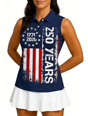 アメリカ独立記念日 アメリカ建国250周年 女性用 グラフィック 国旗 アスレチックシャツ テニスポロシャツ タンクトップ ノースリーブ 弾性ある モイスチャーコントロール 高通気性 テニス ゴルフ ピクルスボール シャツカラー タンクトップ ブルー テニスウェア