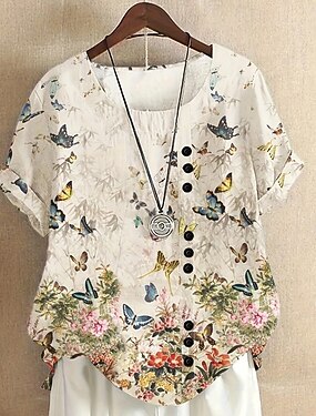 女性用 シャツ ブラウス フェイクコットンリネン プリント フラワー カジュアル ノースリーブ 半袖 クルーネック スクエアネック スクープネック レギュラートップス 日常 ホワイト ベージュ 夏 春
