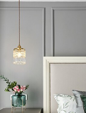 led ペンダント ライト クリスタル シャンデリア フル銅ランプ ホルダー キラキラ クリスタル ランプ シェード シングル ヘッド シーリング ライト用ロフト バー リビング ルーム ダイニング ルーム