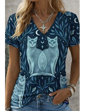 女性用 女性 カジュアルシャツ 幾何学模様 抽象的 カジュアル Tシャツ バットウィングスリーブ ブラック プリント ドルマン 半袖 エレガント 旅行度假风 Vネック 夏