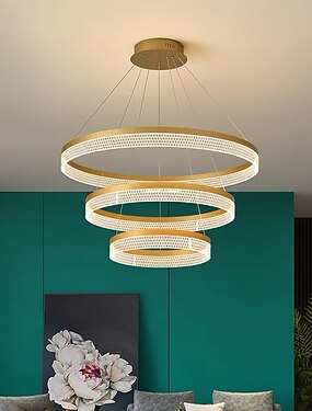 60cm ペンダント ライト LED リング メタルブラッシュド モダン 220-240v 110-120v 現代 クリスタルクリスタル led ペンダント ライト シャンデリア用 リビング
