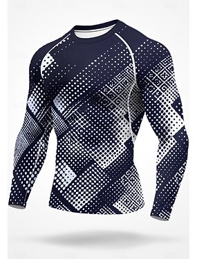 男性用 ランニングTシャツ アスレチックシャツ ジムシャツ フィットネスシャツ ワークアウトシャツ 長袖 Tシャツ 幾何学模様 UPF 50 UV耐性 ソフト モイスチャーコントロール マウンテンバイク ジムトレーニング ハイキング スポーツウェア アクティブウェア 青と白