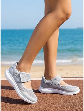 女性用軽量ライトグレーベルクロウォーキングスニーカー – 通気性の良いメッシュ素材のアスレチックシューズ。快適なスポーティスタイルで、ウォーキング、旅行、普段使い、フィットネス、アウトドアアクティビティに最適です。
