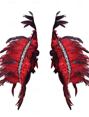 カーニバル2026 リオカーニバル サンバアクセサリー 女性用 赤い羽根のエポレット ラインストーントリム付き ブラジルフェスティバルパフォーマンスコスチューム