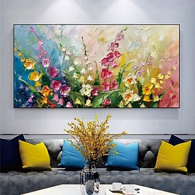 花の油絵 手描きの野生の花の絵画 手作りの 3D テクスチャ 咲く花の絵画 キャンバス 特大サイズ 植物画 壁アート 植物画 壁アート 装飾 バラのアート