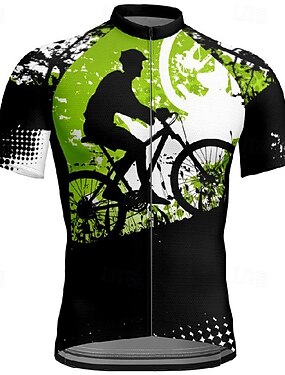 男性用 サイクリングジャージー グラフィック 半袖 バイク Tシャツ ジャージー 3つのリアポケット付き マウンテンサイクリング 速乾性 人間工学デザイン ウィッキング 高通気性 スポーツ ブラック 衣類