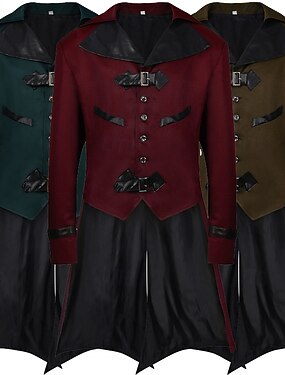 パンク&ゴシック 中世 クローク ジャケット テールコート 長袖 バンパイヤ 貴族 仮装 男性用 ファンタジー 王立 クリスマス ハロウィーン カーニバル 性能 舞台 レンフェア 大人 コート シャツ パンツ