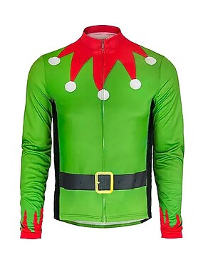 男性用 サイクリングジャージー グラフィック サンタクロース おかしい 半袖 バイク ジャージー トップス 3つのリアポケット付き マウンテンサイクリング ロードバイク 速乾性 ソフト 反射性ストリップ 後ポケット スポーツ グリーン 衣類