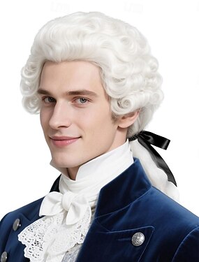 白いウィッグ、リージェンシー風のリングレット、歴史的な植民地時代のコスチュームウィッグ、男性用面白いウィッグ、ジョージ、カーニバル、フェスティバル、パーティー用
