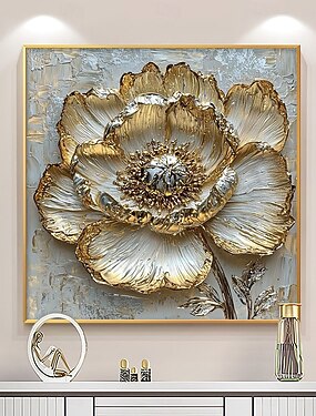 キャンバスに描かれた手作りのオリジナルの質感のある金色の花の油絵。抽象的な大きな花の壁アート。室内装飾用。内側のフレームなし。(フレームなし)