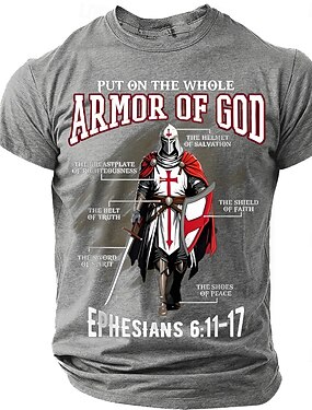 男性用 神の武具を身に着ける 中世の騎士 十字軍 エフェソの信徒への手紙 6 11 17 聖句 キリスト教 宗教 戦士 T シャツ グラフィック 半袖 教会用 デザイナー衣料 アパレル S M L XL XXL X