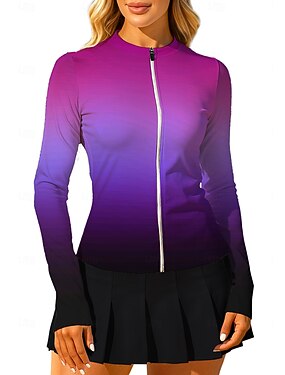 女性用 勾配 トップス スポーツシャツ テニスシャツ テニストップ 長袖 ジッパー 花柄 UPF50+ UV耐性 高弾性 吸汗性 高通気性 バレーボール テニス ゴルフ クルーネック ラウンド Tシャツ トレーナー イエロー 濃い紫色 パープル テニスウェア