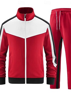 男性用 カラーブロック 2個 3Dスウェットシャツセット トラックスーツ ジップアップスウェットシャツ 長袖 長ズボン グランダッドカラー スポーティー カジュアル 普段着 カジュアル アスレイジャー 日常 ジッパー 3Dプリント 春 秋 冬 ブラック ブルー ルビーレッド