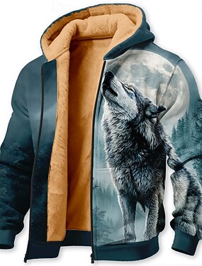 男性用 オオカミ フリース パーカー フーディーズ スウェットシャツ ファッション クール 日常 長袖 フード付き 祝日 ストリートウェア ブラック ルビーレッド ブルー スカイブルー ブラウン ジッパー ポケット 秋 冬 デザイナー S M L XL XXL XXXL