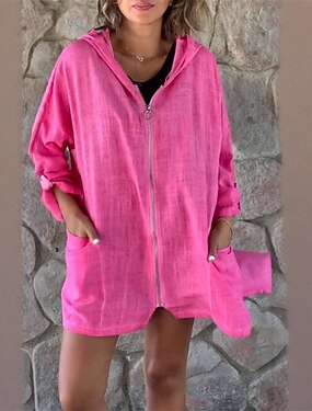 女性用 カジュアルジャケット パーカージャケット 快適 高通気性 ジッパー ポケット ファッション 近代の カジュアル 平織り お出かけ 週末 ジッパ- レギュラー フード付き レギュラー 長袖 アウターウェア ローズ グレー 春 秋