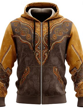 男性用 アメリカの米国旗 カウボーイ コスチューム パーカー ジャケット スウェットシャツ 西部のカウボーイ オールオーバープリント 長袖 ファスナー ストリートウェア バケーション ブラック ブラウン ジッパー 秋 冬 デザイナー S M L XL XXL XXXL