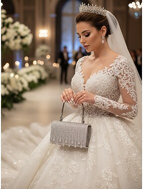 シルバーチェーン、ビーズのディテール、高品質のジッパーが付いた女性用のエレガントなクリスタルイブニングハンドバッグ。結婚式、パーティー、フォーマルなイベントに最適です。