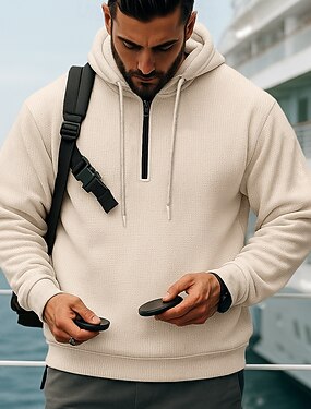 男性用 パーカー プルオーバーフーディースウェットシャツ クォータージッパーパーカー ブラック ホワイト ブルー カーキ色 グレー フード付き 平織り テクスチャード加工 スポーツ カジュアル 日常 ストリートファッション クール スポーツウェア 春 & 秋 衣類 パーカー トレーナー