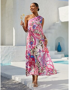 blush&beast シルキーサテン ピンク ペイズリー マキシドレス