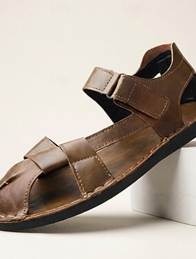 メンズ調節可能スポーツサンダル - 耐久性のあるフェイクレザーとテキスタイルストラップ、オープントゥの夏用フットウェア、快適なアウトドアスタイル、ビーチ、リゾート、カジュアルな休暇に最適