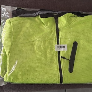 鮮やかなカラーの中温のサイクリング用ジャケット。良品質。胸ポケットはあまり大きくありません。襟はかなり低いです。 Mサイズは通常サイズに相当します。