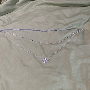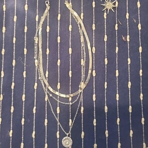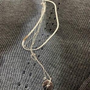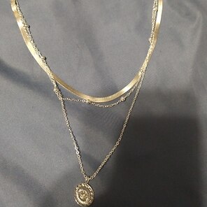 とてもかわいいネックレス。品質は、私が費やした数ドルのコストに匹敵します。ペンダントは左利き用なので一人では少しつけにくいですが、私は右利きで真ん中のチェーンがねじれて組み立てられていたので、少し外さないとそのままです。