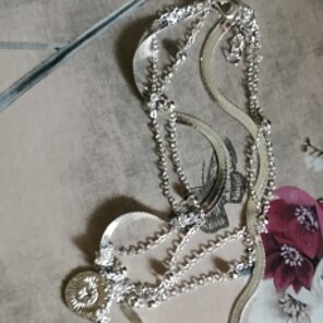 very cute necklace.quality equals the cost of the few $$ I spent. the pendant is put on for a left hander so it it is a little hard to get on by myself, since I am a righty and the middle chain was assembled twisted so unless I takebit apart it will stay that way.