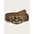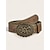 女性用ボヘミアン花柄彫刻入りワイドレザーベルト - ヴィンテージウエスタンスタイル、アンティークゴールドフラワーバックル、ドレス、フェスティバル、普段使いに最適な調節可能なウエストバンド