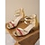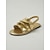 レディース ゴールド コンフォート フラットサンダル、オープントゥ、伸縮性のあるバックストラップ付きカジュアルドレスシューズ、ガーデンパーティー、バケーションに最適 &屋外イベント
