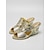 女性用のゴールドの装飾が施されたウェッジサンダル、田舎の納屋での結婚式に花嫁の母親が履く快適なスリッポンドレスシューズ