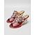 女性用エレガントなゴールドとレッドのストラップ付きドレスサンダル - クルーズ旅行、ヨットパーティー、夏のリゾートウェアに最適な、シックなスクエアトゥのブロックヒールとトリプルアンクルストラップ