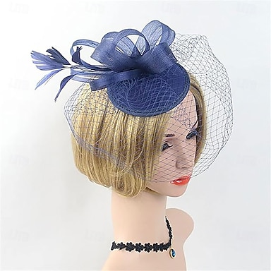 ヘッドドレス チュール ファブリック フェドーラ帽 結婚式 ティーパーティー 競馬 カクテル エレガント ヴィンテージ と フェザー かぶと 帽子