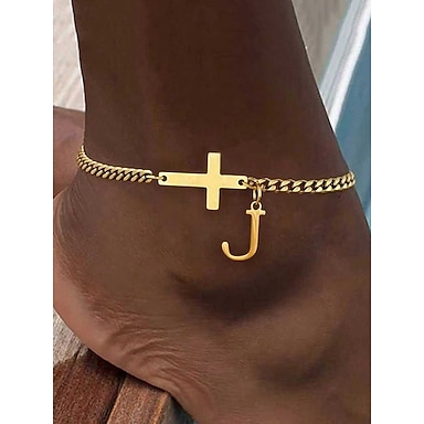 女性用パーソナライズステンレススチールアンクレット、アルファベットチャーム、クロスと文字のデザイン、クリスマスギフトに最適 - 26文字から選択可能