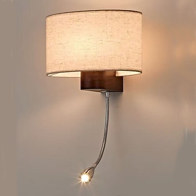 リネンの半円形ランプシェード付き壁掛け照明器具、アンビエントな寝室の壁照明、壁掛け式壁掛け照明、モダンで素朴な壁ランプ 110-240V