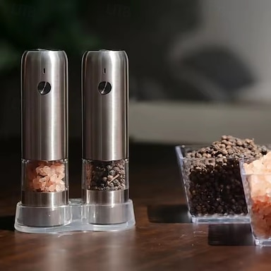 ミニ電動ソルト&ペッパーグラインダー USB充電式 片手操作 ステンレススチール スパイスミル キッチンペッパーグラインダー