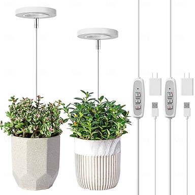 4個のLED調節可能な植物育成ライト、エンジェルリング、赤 &ブルーフルスペクトル、3/9/12時間タイマー、3段階調光、17~63cmの高さ調節可能、USB電源、多肉植物、花、室内植物用