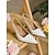レディースホワイトポインテッドトゥTストラップヒール(リボン付き) - 都会的なエレガントなブライダルウェディングシューズ &教会での儀式、現代の花嫁や結婚式のゲストに最適