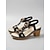 女性用の白と黒の水玉模様のストラップヒール、アンクルストラップ付き。ガーデンウェディングに最適なスタイリッシュなオープントゥサンダル。結婚式のゲストにも最適です。